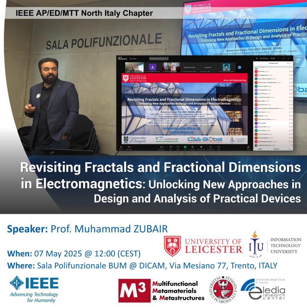 The ELEDIA Research Center was honored to welcome Prof. Muhammad ZUBAIR (Information Technology University, Lahore) for an inspiring seminar on “Revisiting Fractals and Fractional Dimensions in Electromagnetics: Unlocking New Approaches in Design and Analysis of Practical Devices“.