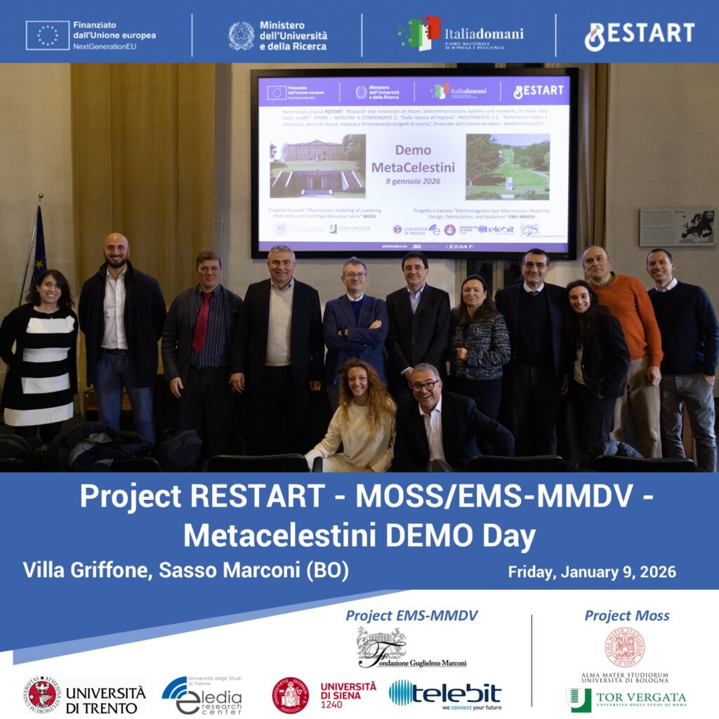 The ELEDIA Research Center is pleased to announce that on Friday January 9th we had the privilege to contribute to the DEMO METACELESTINI Event at Villa Griffone in Sasso Marconi – the historic site where Guglielmo Marconi performed his pioneering wireless transmission experiments back in 1895.